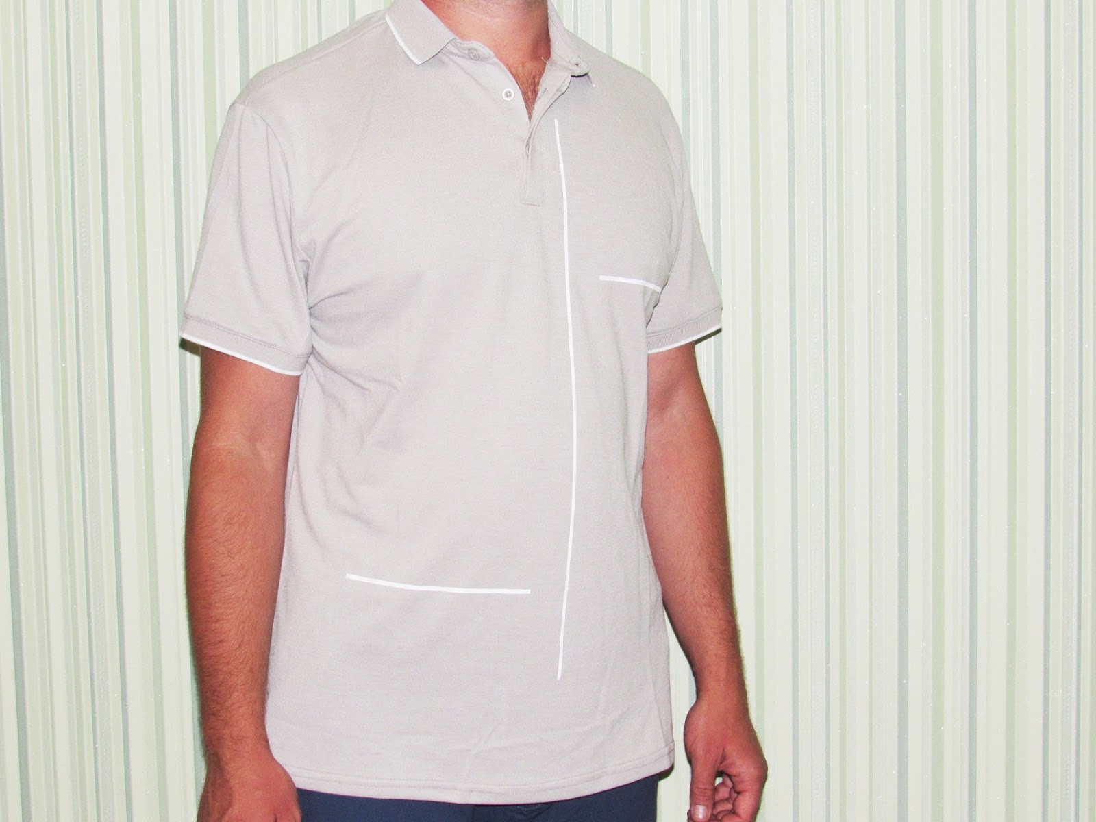 Поло серого цвета не так хорошо смотрится, как предыдущая футболка, ведь, по задумке, эта вещь должна немного облегать фигуру, чего на самом деле не делает. Нужно было выбирать поло на 1-2 размера меньше. Но, в принципе, можно носить и так.